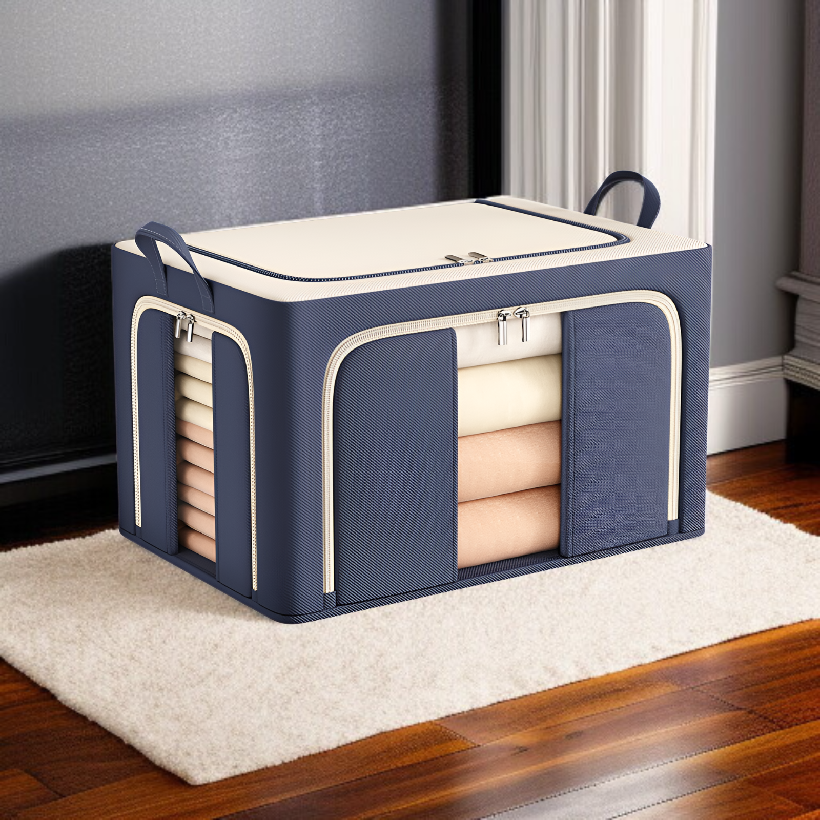 ● Faltbare Kleideraufbewahrungsbox mit robustem Stahlrahmen sorgt für höchste Stabilität und eine langlebige Nutzung im Alltag. ● Praktische dreiseitige Öffnung ermöglicht einen bequemen Zugriff auf Ihre Kleidung und Futons, ohne die Box komplett zu entleeren. ● Stapelbares Design spart wertvollen Platz im Kleiderschrank und sorgt für eine ordentliche und übersichtliche Aufbewahrung. ● Ideal für Futons, Decken oder saisonale Kleidung – schützt zuverlässig vor Staub, Feuchtigkeit und Schmutz.